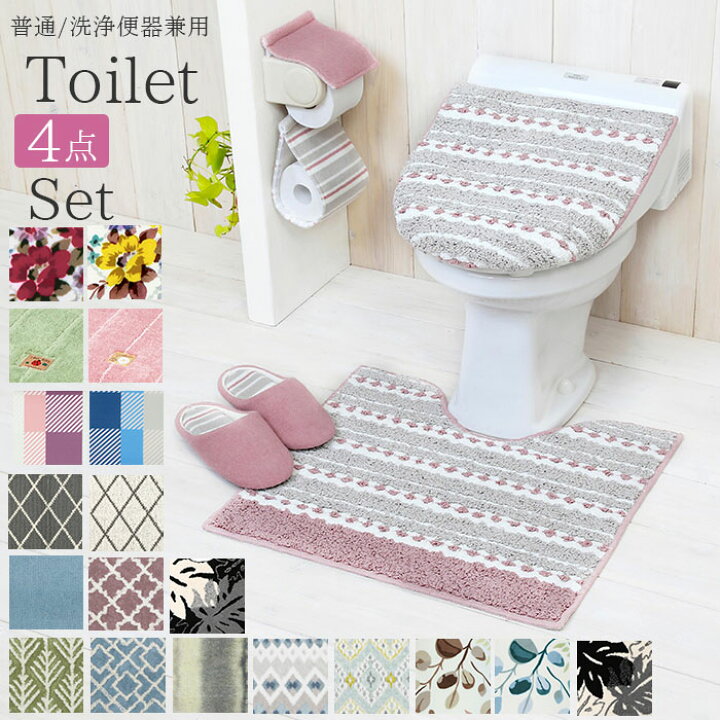 楽天市場 トイレマットセット 4点 好評 トイレスリッパ トイレフタカバー おしゃれ トイレットペーパーホルダー カバー トイレセット 花柄 洗える 滑りにくい 洗濯可 かわいい 引越祝い 新生活 一人暮らし プレゼント ギフト トイレタリー インテリア Backyard Family